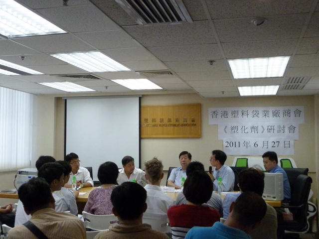 近日,「塑化劑」風波令全球關注,商會會員及其客戶更對此產生不少疑慮。為了維護同業權益,香港塑料袋業廠商會於2011年6月27日(星期一)舉行《塑化劑》研討會,邀請熟悉塑化劑的專家,協助業界全面了解塑化劑與業界的關係,即席解答同業對塑化劑的問題,議會上更將會提供珍貴的資料,供同業參考,以澄清塑化劑對同業產品的影響,協助同業向客戶解答有關塑化劑的問題。會上更邀請傳媒澄清行業製造的PP、PE袋工序中,絕不可能加入塑化劑。